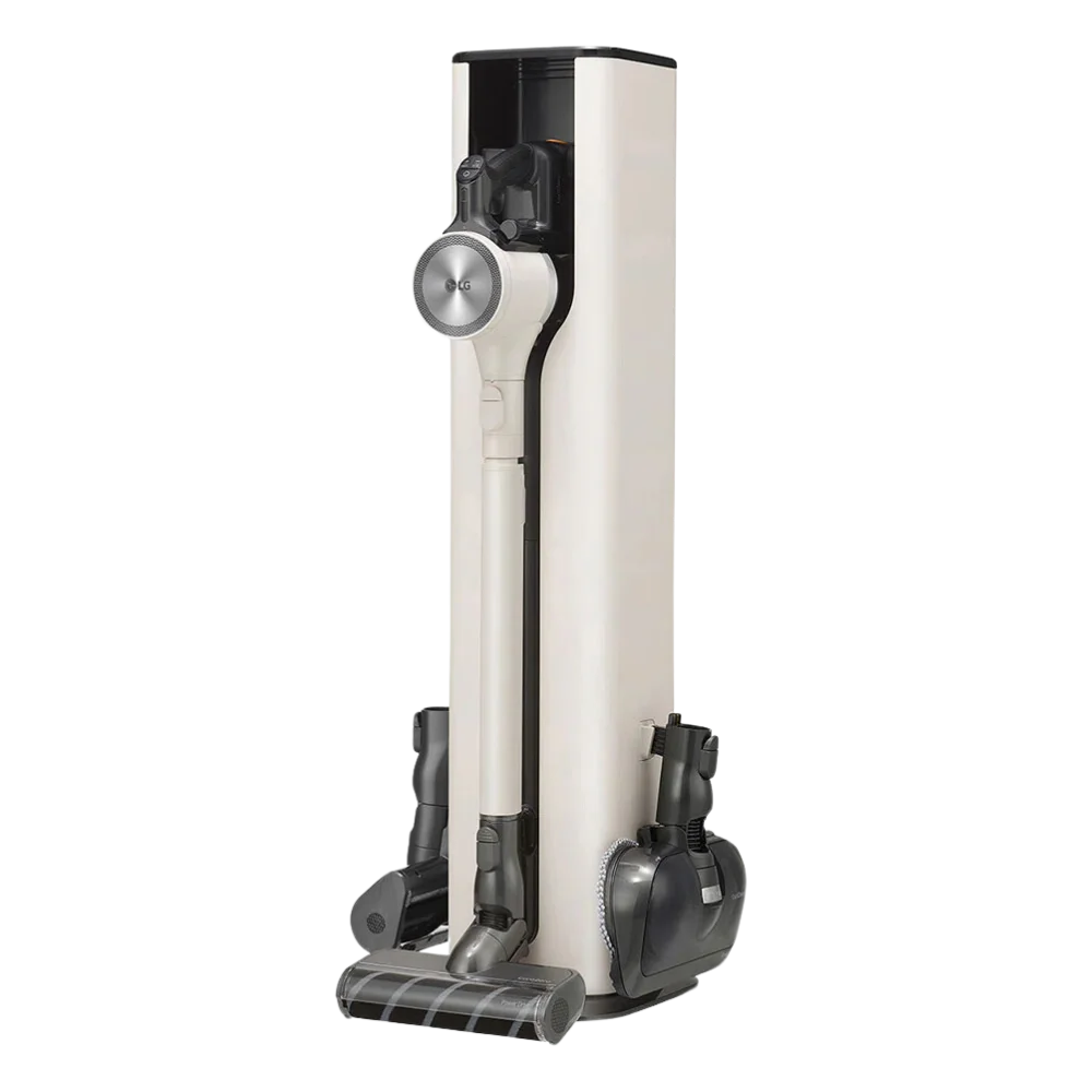 *Based on LG internal test results, run time for each mode–Normal, Power, and Turbo–is up to 120 mins, 60 mins, and 14 mins, respectively. (A9 run time for each mode-Normal, Power and Turbo-is up to 80 mins, 18 mins and 12 mins respectively) These run times apply when two batteries are used, with one being charged in the vacuum cleaner and the other being directly charged by the charging station. With one battery (battery is directly charged from charging station), run time for each mode–Normal, Power, and Turbo-is up to 60 mins, 30 mins, 7 mins, respectively. Actual run time may be reduced when the Power Drive Nozzle with motor is in use and may also vary depending on operating environment and hours of use. The test was run at room temperature(26℃, 78.8℉), without any nozzle, and with the Wi-Fi on.