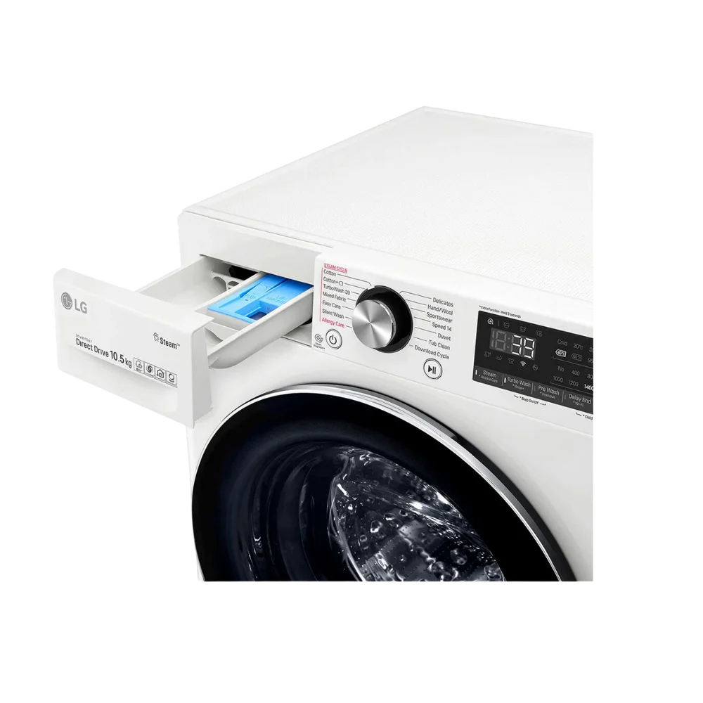 *Tested by Intertek, based on IEC 60456 : edition 5.0. TurboWash39 cycle with 5kg of IEC load compared to Conventional Cotton Cycle with TurboWash (F4V9RWP2W vs. FC1450S2W). The results may be different depending on the environment.